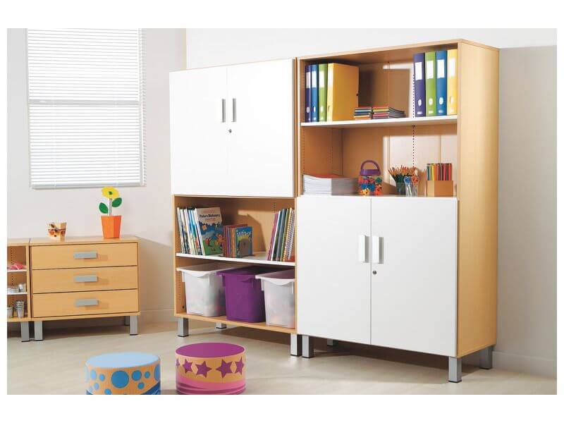 Die intelligente Aufteilung mit Türen, Einlegeböden und offenen Regalfächern, macht den Kombischrank zu einem Stauraumgarant. Farbige Dekore schaffen Abwechslung bei der Einrichtung und machen das Möbelstück noch ein Stück kinderfreundlicher. Alle Holzteile sind beidseitig melaminharzbeschichtet, wodurch die Oberfläche kratzfest, lichtbeständig und leicht zu reinigen ist.