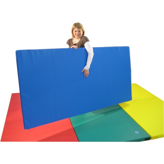 Die Turnmatte ist mit einer reißfesten Polyester-Oberseite ausgestattet und in den Farben Blau, Rot, Gelb oder Grün erhältlich.