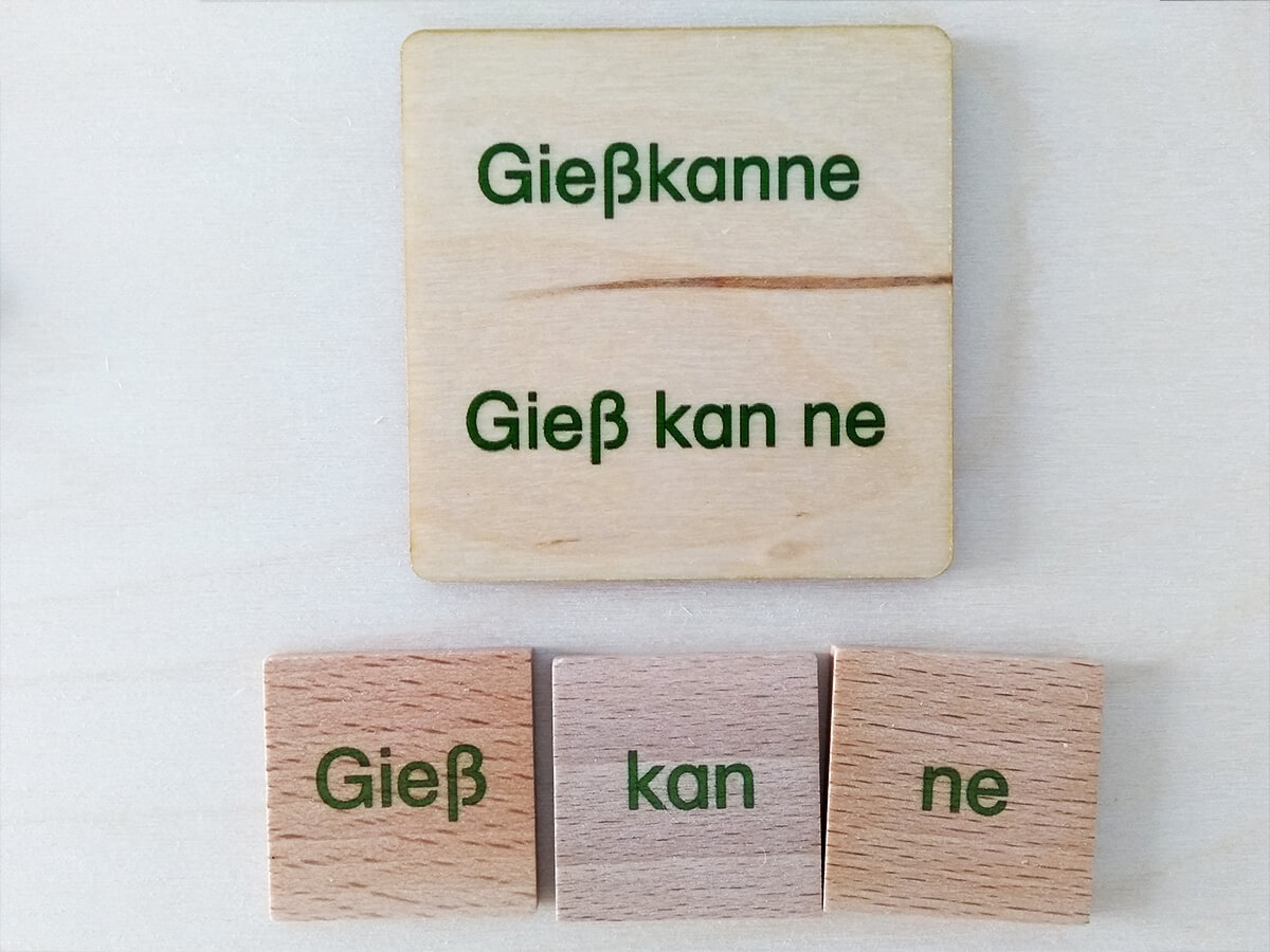 - Inhalt: 60 x Bildplättchen und 180 x Silbenplättchen