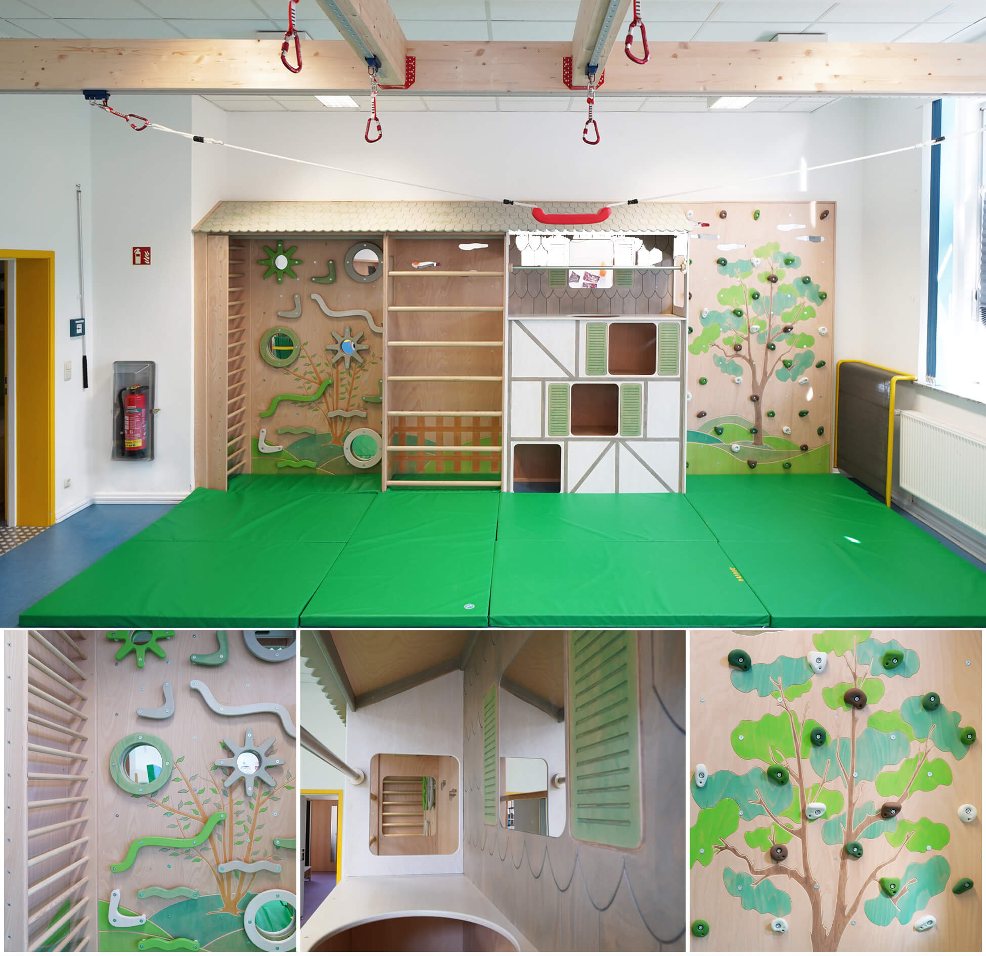 Wie immer beschäftigen wir uns ausführlich mit den Wünschen und Vorstellungen des Auftraggebers und ergänzen diese durch unser Fachwissen. Auf diese Weise entstehen Bewegungsräume und Kletterwände, die modernsten Anforderungen hinsichtlich des Kinderkletterns im Kindergarten entsprechen.