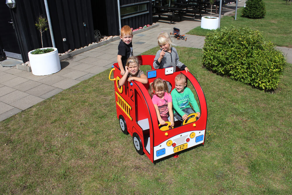 Das Kinderspielhaus „Mini Feuerwehrauto“ ist der ideale Ort für kleine Feuerwehrleute, die von spannenden Einsätzen träumen. Mit Platz für bis zu sechs Kinder lädt es zu fantasievollen Rollenspielen ein, bei denen soziale Kompetenz und Teamarbeit spielerisch gefördert werden. Fahrer und Beifahrer haben jeweils ein voll bewegliches Lenkrad, so dass jeder seinen Platz findet und es keine Rangeleien um das Lenkrad gibt. Gemeinsam planen die Kinder Einsätze, steuern das Feuerwehrauto und helfen sich gegenseitig wie echte Feuerwehrleute.