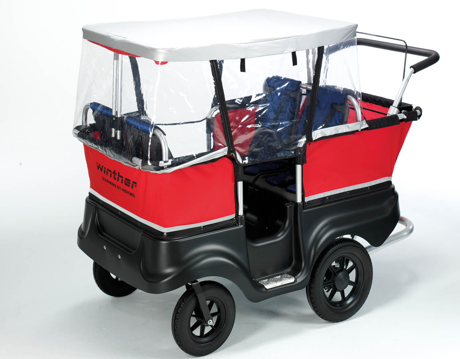 Voraussetzung für Regenschutz sind jedoch mindestens zwei Vorrichtungen für einen Sonnenschutz, da das Regenverdeck auf dessen Dächern montiert wird. Der Regenschutz kann schnell zusammengelegt und verstaut werden. Dank des Regenschutzes für den WINTHER Krippenwagen reisen Kinder stets trocken und komfortabel. Finden Sie weitere Kinderfahrzeuge und Transportwagen in unserem Kindergartenbedarf HAIDIG® Online-Shop!