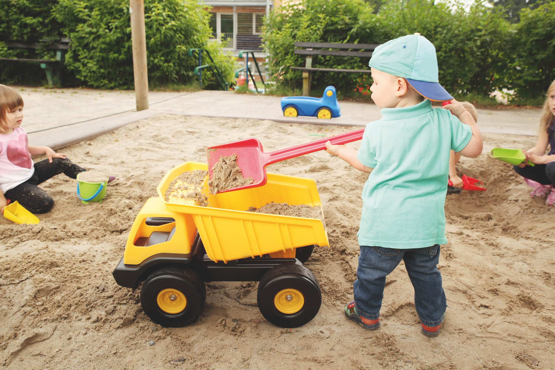 Und für noch mehr Bauspaß gibt es in unserem Shop alles, was kleine Bauarbeiter brauchen: Sandspaten, Sandeimer und die große Sandspielanlage „Baustelle“ mit Flaschenzug! Alles für eine richtige Baustellenaktion - direkt bei uns erhältlich!