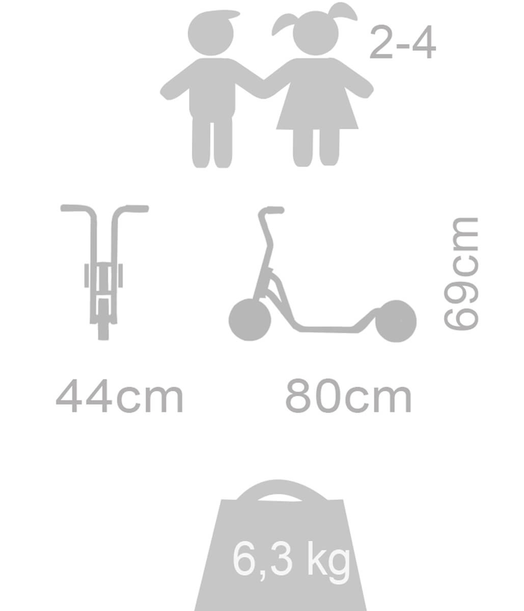 Alles in allem bietet der Kinderroller mit 2 Hinterrädern "Mini" eine unschlagbare Kombination aus Stabilität, Sicherheit und Fahrspaß für Kinder im Alter von 2 bis 4 Jahren. Mit seiner äußerst stabilen Konstruktion und dem rutschfesten Trittbrett ist er ideal für den Einsatz in öffentlichen Einrichtungen und bietet den Kleinen die Möglichkeit, spielerisch ihre Umgebung zu erkunden und neue Abenteuer zu erleben.